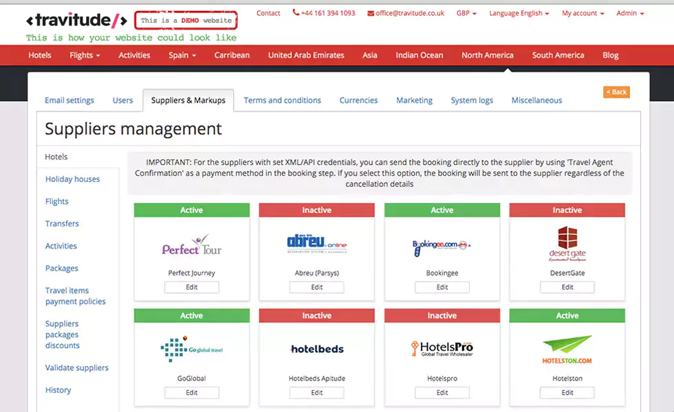 • activate any of the already integrated suppliers with your own credentials